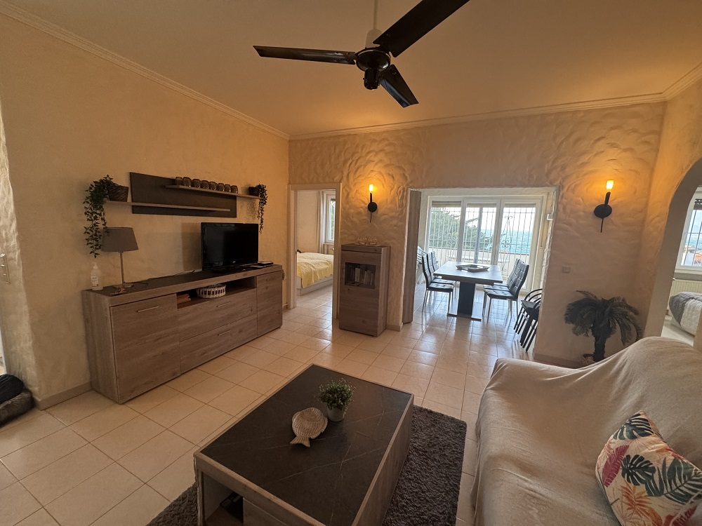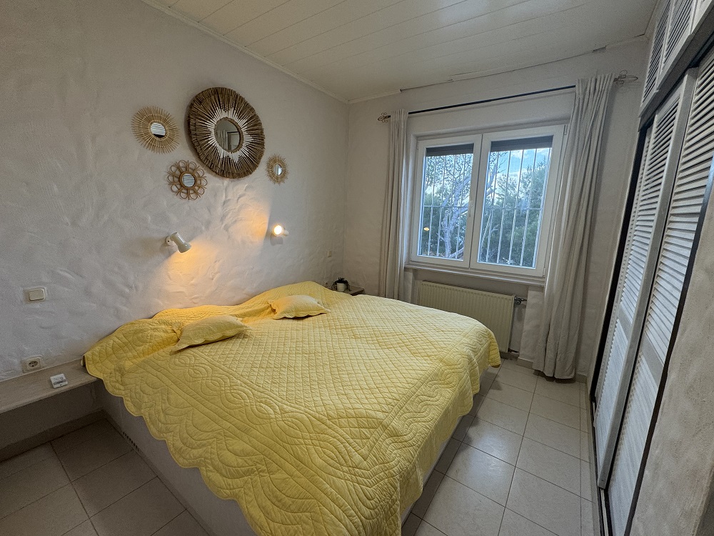 con entrada separada. Mientras, el terreno y la piscina son de uso exclusivo de los huéspedes. Con una cocina muy bien equipada, 3 dormitorios, 2 baños con ducha, salón con tv francés/alemán, comedor con acceso directo a la terraza. Con aire acondionaco/bomba de calor. Posibilidad de aparcar los coches sobre el mismo terreno. Hay una cala, con piedras, a unos 300 m que suele ser visitada por los amantes del buceo. La playa de arena fina más cercana es la de Cala Montgó, a unos 750 m.