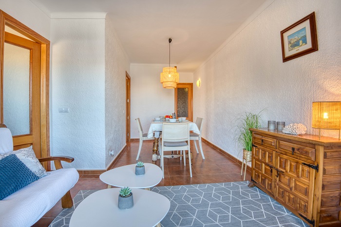 Piso en venta delante de la playa y de los comercios. De 42 m². Distribuido en dos habitaciones dobles, un baño completo con ducha, cocina independiente equipada, salón-comedor y terraza. Se vende totalmente amueblado y el edificio dispone de ascensor. La vivienda cuenta con licencia turística; actualmente está alquilada durante la temporada de verano, por lo que la firma se podrá realizar a partir de septiembre.