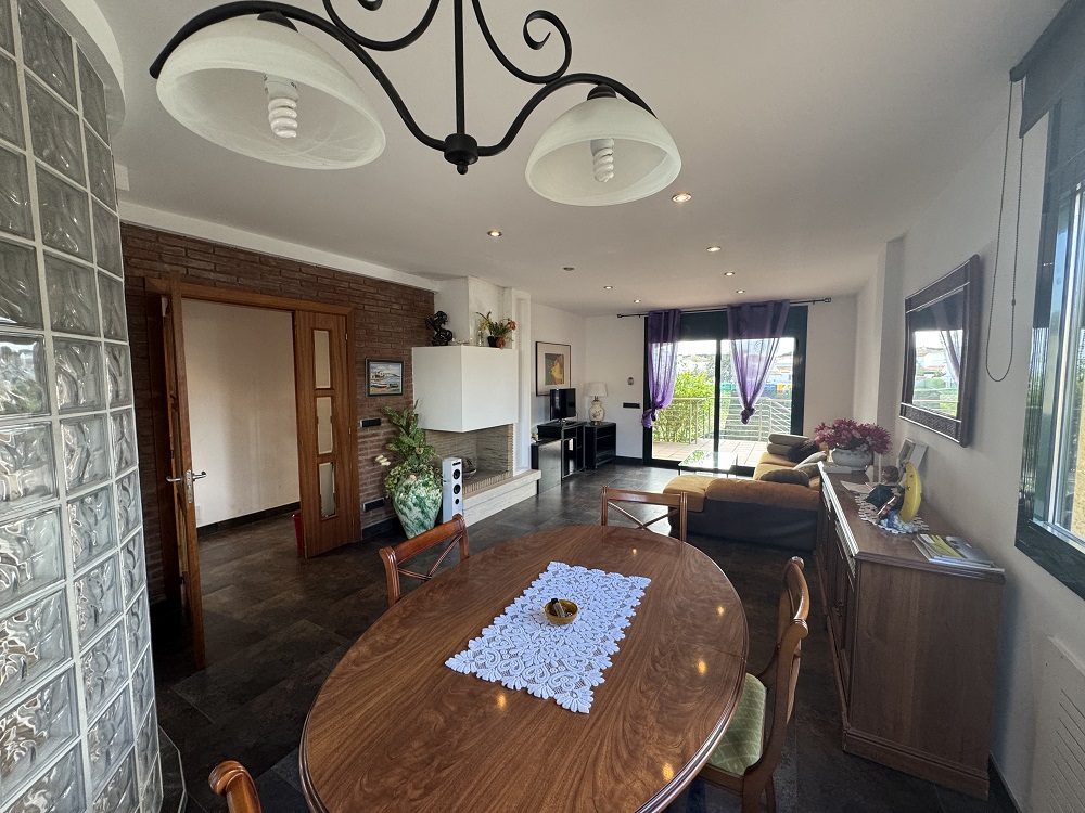 Una casa con piscina privada, situada en una zona tranquila y a pocos metros del centro de Riells. De 3 plantas, muy espaciosa y con un gran garaje con mucho espacio. Para 4 cotxes, sala de máquinas y 1 aseo. Planta principal con un salón-comedor y una cocina con salida a una terraza. Dos dormitorios dobles con armarios empotrados, un dormitorio individual y un baño completo con ducha. En la segunda planta se encuentra una gran terraza cubierta, un baño completo con bañera y un gran dormitorio doble como Suite con un armario de película.